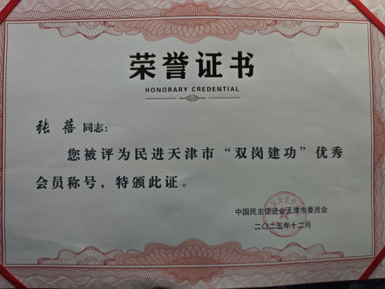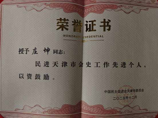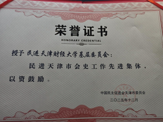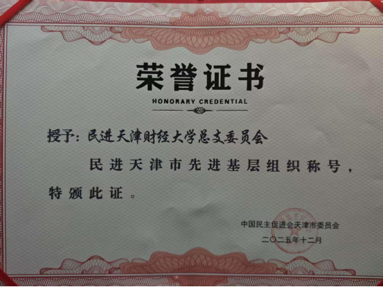 民进天津财经大学总支委员会荣获“民进天津市先进基层组织”、“民进天津市会史工作先进集体”两项表彰。我校人文学院日语系教师张蓓荣获民进天津市“双岗建工”优秀会员表彰,管科学院管信系教师庄坤荣获民进天津市会史工作先进个人表彰。